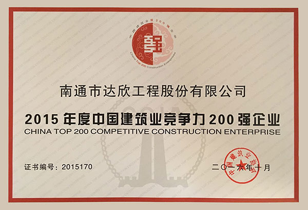新的《中國建筑業(yè)雙200強企業(yè)評價辦法》主要從經營規(guī)模、資產規(guī)模、盈利能力、上繳稅金、科技、質量、精神文明等五個方面進行綜合評價,經企業(yè)自愿申報、各地區(qū)和有關行業(yè)協(xié)會推薦、專家評審。這是公司連續(xù)5年榜上有名,也是公司首度由成長性百強跨入中國建筑業(yè)競爭力200強企業(yè)序列,標志著公司綜合競爭力水平再上新臺階。