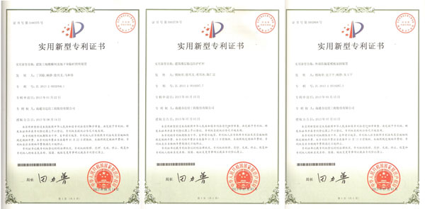 第四工程公司申報的《建筑工地樓梯間及地下室臨時照明裝置》、《建筑樓層臨邊防護(hù)欄桿》、《外墻防漏漿模板加固裝置》技術(shù)的成果,日前獲得國家知識產(chǎn)權(quán)局頒發(fā)的實用型專利。