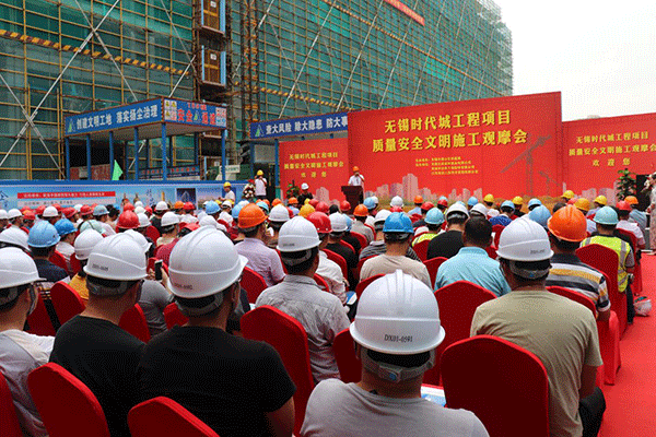 無錫旭輝時代城項目承建開工至今,項目部秉承開拓創(chuàng)新的作風(fēng),努力提高項目的標(biāo)準(zhǔn)化、規(guī)范化、精細(xì)化施工管理能力,以分級管理與專項檢查為重點,大大提升了施工質(zhì)量和安全管理水平,為公司贏得了良好的社會效益,而此次會議的順利召開也是繼蘇州旭輝鉑悅府項目榮獲“詹天佑獎”后取得的又一次階段性勝利,為企業(yè)再上新臺階打下了堅實的基礎(chǔ)。