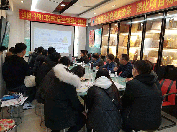 畢業(yè)生們首先觀看了集團(tuán)公司和工程公司宣傳片,工程公司經(jīng)理陳貴榮就公司的發(fā)展概況、企業(yè)文化、本次招聘的工作崗位以及薪酬、福利等內(nèi)容作了介紹。隨后,畢業(yè)生們進(jìn)行了自我簡(jiǎn)介,現(xiàn)場(chǎng)咨詢了有關(guān)工作的情況,陳經(jīng)理一一進(jìn)行了詳細(xì)解答,幫助他們更好的了解達(dá)欣集團(tuán)。聽(tīng)取了介紹后,畢業(yè)生們也紛紛表達(dá)了想加入到達(dá)欣團(tuán)隊(duì)中的意愿。