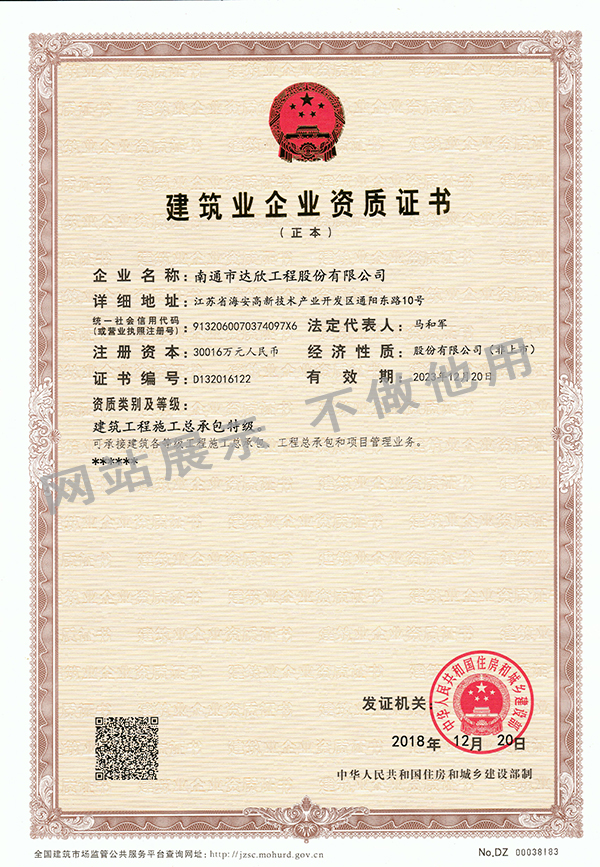 特級資質(zhì)的成功晉升,再次實現(xiàn)了達欣人的又一個夢想,標(biāo)志著達欣發(fā)展邁入了又一座新的里程碑。特級資質(zhì)企業(yè),可承接建筑各等級工程施工總承包、工程總承包和項目管理業(yè)務(wù),這為達欣集團全力布局國內(nèi)市場、大力開拓海外市場拓寬了領(lǐng)域、增強了實力,為企業(yè)的發(fā)展必將產(chǎn)生積極而深遠的影響。
