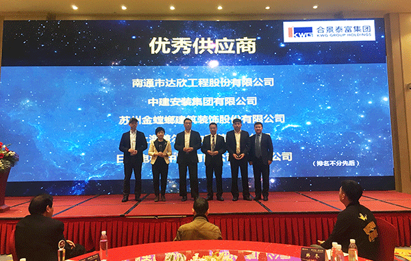會上,公布了2018年度優(yōu)秀供應(yīng)商評選結(jié)果,集團(tuán)榮獲合景泰富集團(tuán)上海區(qū)域公司“優(yōu)秀供應(yīng)商”,集團(tuán)黨委書記劉厚純上臺領(lǐng)獎并作為優(yōu)秀供應(yīng)商代表發(fā)言。