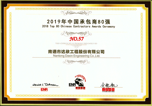達(dá)欣集團(tuán)入選2019ENR/《建筑時報》中國承包商80強(qiáng)