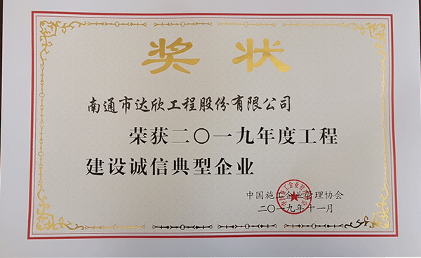 信筑天下▏達(dá)欣集團(tuán)榮獲“2019年度工程建設(shè)誠信典型企業(yè)”