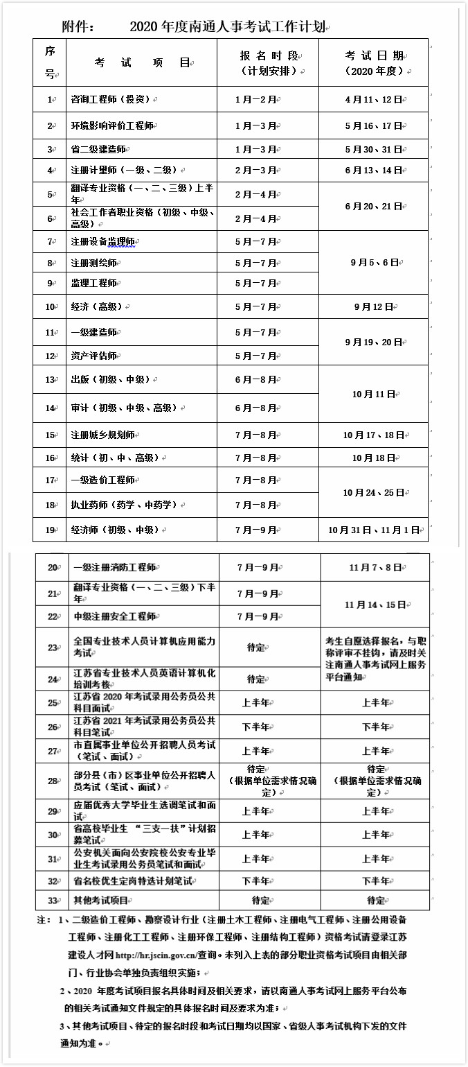 2020年度南通市人事考試工作計劃