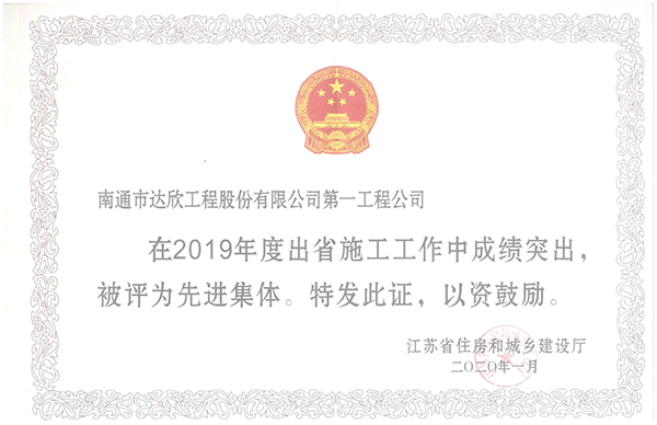 江蘇省住房和城鄉(xiāng)建設(shè)廳駐上海辦事處建管處公布了“2019年度江蘇出省施工企業(yè)先進(jìn)集體和先進(jìn)個(gè)人的通報(bào)”。第一工程公司榮獲“2019年度江蘇出省施工企業(yè)先進(jìn)集體”,劉厚純、杭小建榮獲“江蘇出省施工先進(jìn)個(gè)人”。徐長(zhǎng)庚榮獲“江蘇人民政府上海辦事處建管處優(yōu)秀建造師”稱號(hào)。