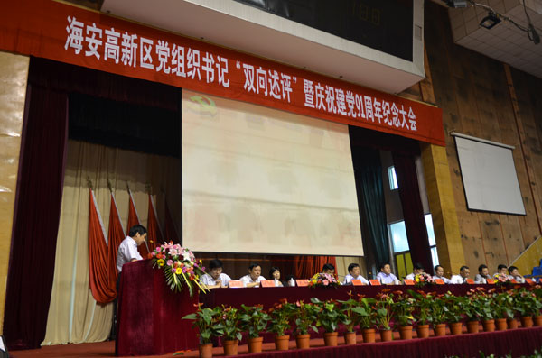 6月27日,海安高新區(qū)黨組織書記“雙向述評”暨慶祝建黨91周年大會(huì)在我縣海中體藝館舉行。縣委常委、海安高新區(qū)黨工委書記張亞曦及全體黨政負(fù)責(zé)人、各局(辦)、各街、村(居)全體人員、各黨(總)支部書記、全體縣、鎮(zhèn)黨代表參加了會(huì)議。