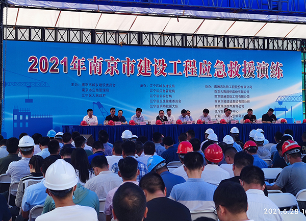 6月28日,由南京市城鄉(xiāng)建設委員會、南京市應急管理局、江寧區(qū)人民政府主辦的“南京市建設工程應急救援演練觀摩會”在第二工程公司蘇沃科技園項目部召開。南京市建委副書記朱家祥、南京市安委辦專職副主任韓成頌;江寧區(qū)人民政府副區(qū)長孫兆金、江寧區(qū)城鄉(xiāng)建設局局長易強等領導,全市施工企業(yè)、監(jiān)理單位、建設單位負責人及相關人員等近500余人參加本次活動。集團常務副總經理王邦國主席臺就坐。