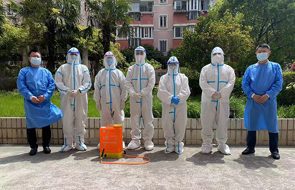 在社區(qū)的統(tǒng)一安排下,志愿者們變身“大白”,迅速加入抗疫行動(dòng)中,對(duì)整個(gè)小區(qū)進(jìn)行不留死角、全方位的消殺工作,以及小區(qū)居民日常生活物資的搬運(yùn)發(fā)放等工作。志愿者們不辭辛苦、任勞任怨,充分展現(xiàn)了達(dá)欣人勇于擔(dān)當(dāng)、無(wú)私奉獻(xiàn)的精神。