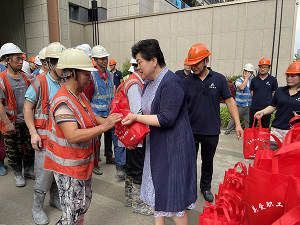 葛玉琴深入施工現(xiàn)場,看望慰問了高溫下堅守崗位的一線職工,為他們送上慰問用品,并叮囑大家注意安全,做好防暑降溫工作。她說,防暑降溫是夏季重要勞動保護工作,直接關(guān)系廣大勞動者的身體健康和企業(yè)的安全生產(chǎn)。她希望,大家共同努力,讓安全意識更加深入人心,切實筑牢安全屏障,項目部要合理安排作業(yè)時間,做好防暑應急措施,切實維護建設者勞動安全健康權(quán)益。