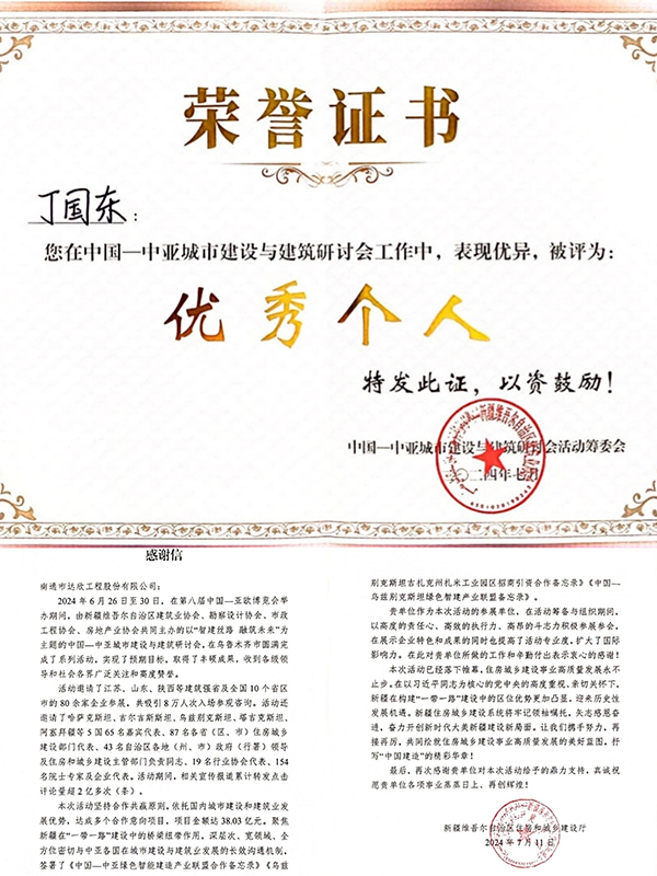 近日,公司收到一封新疆維吾爾自治區(qū)住房和城鄉(xiāng)建設(shè)廳發(fā)來的感謝信,信中對(duì)我公司在烏魯木齊召開的“智建絲路 融筑未來”為主題的中國——中亞城市建設(shè)與建筑研討會(huì)中,所做的工作和辛勤付出表示衷心的感謝。公司作為本次活動(dòng)的江蘇省參展單位之一,在活動(dòng)籌備期間,以高度的責(zé)任心、高效的執(zhí)行力、高昂的斗志積極參展參會(huì),在展示企業(yè)特色和成果的同時(shí)也提高了活動(dòng)專業(yè)度,擴(kuò)大了國際影響力。