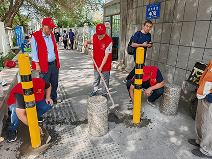 8月4日,針對人行道流動(dòng)商販占道頑疾,達(dá)欣集團(tuán)•魯班傳人志愿服務(wù)第十一分隊(duì)主動(dòng)對接新疆維吾爾自治區(qū)烏魯木齊市天山區(qū)解放南路街道,對新華南路人行道安全警示柱進(jìn)行加密安裝工作。
