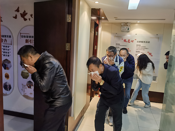 本次演練由滅火行動(dòng)組(質(zhì)量安全部門)、通信聯(lián)絡(luò)組(辦公室)、疏散引導(dǎo)組(核算部門)、安全防護(hù)救護(hù)組(財(cái)務(wù)部門)組成,陳元國為現(xiàn)場執(zhí)行指揮。他強(qiáng)調(diào),一是牢記疏散路線,清楚安全出口和通道位置,不乘電梯、不貪戀財(cái)物;二是熟練使用消防器材,掌握滅火器和消防栓操作;三是強(qiáng)化應(yīng)急意識,發(fā)現(xiàn)火情及時(shí)報(bào)警并報(bào)告物業(yè)安保,做到“早發(fā)現(xiàn)、早報(bào)警、早處置”。在大家配合下,演練圓滿完成。