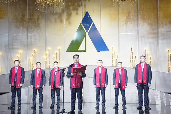 2025年,建筑業(yè)的困難前所未有,市場挑戰(zhàn)前所未有、達(dá)欣人的堅(jiān)韌不拔同樣前所未有。并非只有山頂上的高歌才值得稱頌,那些奔跑時(shí)急促的喘息,疲憊時(shí)沉重的呼吸,遲疑但終究響起的腳步聲,都值得我們看見、肯定。為此,集團(tuán)對(duì)2025年工作中做出突出貢獻(xiàn)的先進(jìn)團(tuán)隊(duì)和個(gè)人進(jìn)行了表彰獎(jiǎng)勵(lì)。集團(tuán)總經(jīng)理王邦國宣讀2025年度表彰決定。