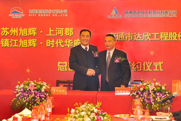 3月20日南通市達欣工程股份有限公司與旭輝集團股份有限公司在上海就蘇州旭輝·上河郡、鎮(zhèn)江旭輝·時代華府項目舉行合同簽約儀式。旭輝集團董事長林中、達欣公司副董事長、黨委書記劉厚純,分別發(fā)表了熱情洋溢的講話。雙方表示此次總包合同的簽約標志著旭輝集團與達欣公司長期合作將會有著更為廣闊的空間!蘇州上河郡項目總建筑面積92075m2,由5棟13層小高層住宅、6棟5層商業(yè)用房和一棟幼兒園組成;時代華府項目總建筑面積161000m2,由9棟32層高層住宅組成。 旭輝集團股份有限公司成立于2000年,是集房地產(chǎn)開發(fā)、建筑施工、物業(yè)管理于一體的全國性房地產(chǎn)開發(fā)企業(yè),連續(xù)5年穩(wěn)居中國房地產(chǎn)企業(yè)百強。湖南旭湘·華府工程是我公司與旭輝集團的首度合作,我公司項目團隊以良好的配合、優(yōu)質(zhì)高效的速度,贏得了建設方與當?shù)亟ㄔO主管部門的肯定,贏得了市場聲譽,該項目先后獲得“全國AAA級安全文明標準化誠信工地”、湖南省“文明工地”、湖南省“安全標準化示范工程”、長沙市“優(yōu)質(zhì)結(jié)構(gòu)”等稱號。