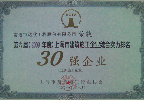 達(dá)欣股份榮獲上海市建筑施工企業(yè)綜合實(shí)力30強(qiáng)企業(yè)稱號
