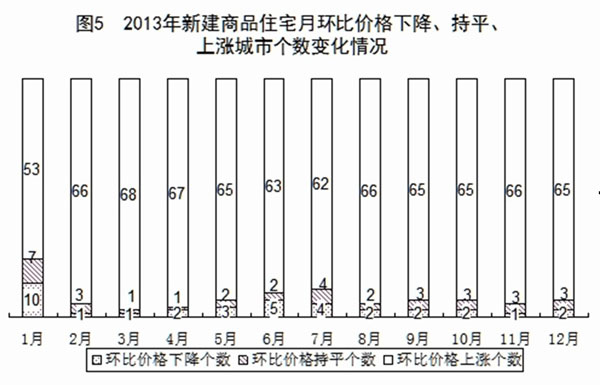 70個大中城市新建商品住宅銷售價格月環(huán)比上漲的城市個數(shù)年末為65個。