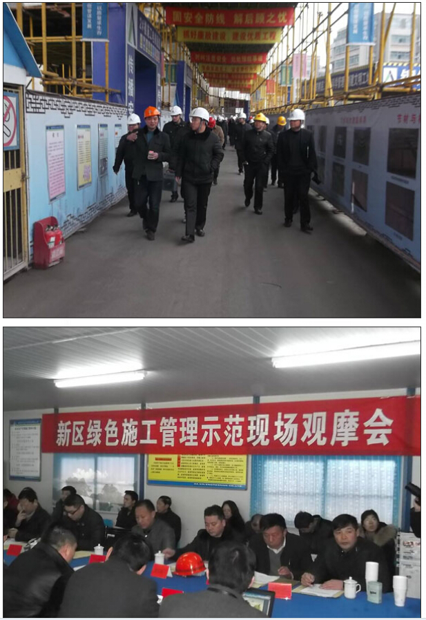 在綠色施工推進會上,建設局劉局長宣讀了綠色施工管理辦法,并要求新區(qū)各單位要以該項目為示范,要圍繞綠色施工的指導措施,把節(jié)能降耗工作貫穿于施工的全過程,注重加強施工技術創(chuàng)新、施工方式創(chuàng)新,積極推廣新技術,合理引進新工藝、新材料;從各方面、各環(huán)節(jié)不斷降低現(xiàn)場施工能耗,提高材料利用率,加快節(jié)能降耗步伐,努力實現(xiàn)綠色施工工程。