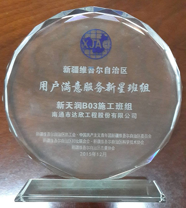 第十一工程公司新疆新天潤B03項(xiàng)目部,憑借可靠的產(chǎn)品質(zhì)量、較高的社會(huì)美譽(yù)度贏得了用戶和業(yè)主的滿意,通過了2015年度新疆維吾爾自治區(qū)總工會(huì)、中國共青團(tuán)新疆維吾爾自治區(qū)委員會(huì)、新疆維吾爾自治區(qū)婦女聯(lián)合會(huì)、新疆維吾爾自治區(qū)科學(xué)技術(shù)協(xié)會(huì)、新疆維吾爾自治區(qū)質(zhì)量協(xié)會(huì)共同組織的專家組現(xiàn)場審核、答辯,成功獲得了新疆維吾爾自治區(qū)全區(qū)、全行業(yè)競爭中建筑業(yè)唯一的“用戶滿意服務(wù)之星新星班組”的光榮稱號(hào)(全區(qū)共獲得12個(gè)新星班組),充分證明了我公司的綜合實(shí)力和業(yè)界廣大客戶對(duì)我公司產(chǎn)品的認(rèn)可。